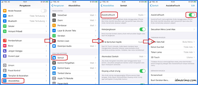 Secara default fitur ini belum aktif ketika anda membeli iphone baru. Untuk menggunakan fitur ini, anda bisa mengaktifkannya terlebih dahulu melalui Menu pengaturan. Langkah-langkahnya buka menu Pengaturan > Aksesibilitas > Sentuh > AssistiveTouch > Ubah ke posisi On. Untuk lebih jelasnya bisa lihat di gambar berikut.